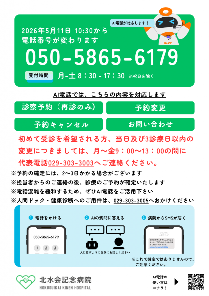 自動音声(AI)電話による診察予約(再診のみ)、予約変更、キャンセルの受付を開始します